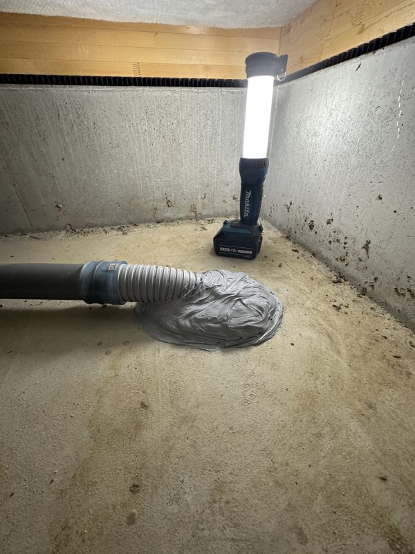 静岡県H市の大雨にて床下浸水し乾燥後に消毒剤噴霧、防蟻剤噴霧、害虫駆除剤噴霧してからオゾンにつ除菌、脱臭その後に床下スリーブに