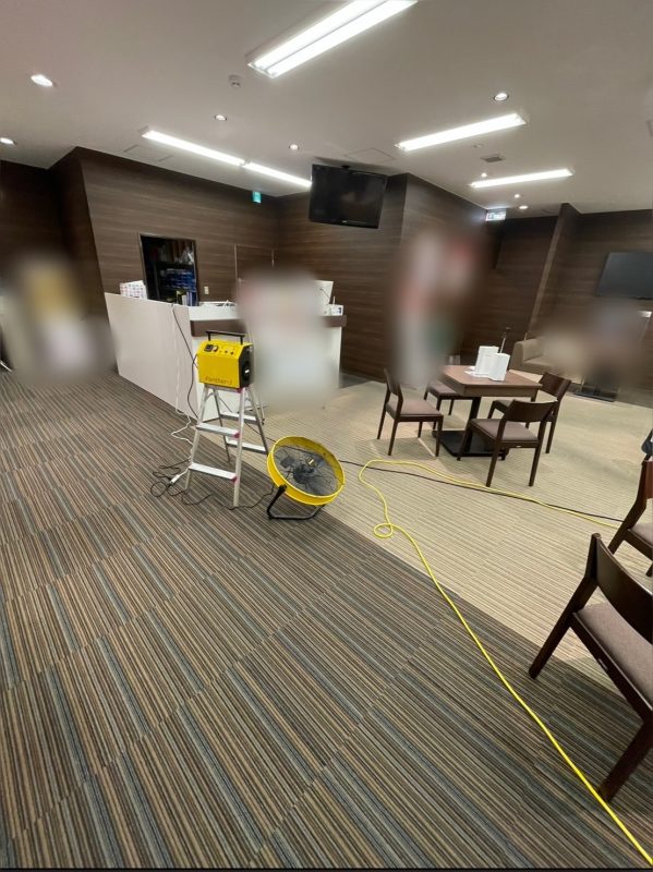 店舗の閉店後カーペットクリーニングを施工して消毒剤を噴霧