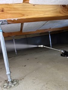静岡県H市の床下消毒作業消毒剤を噴霧しオゾンにて除菌、脱臭になります。